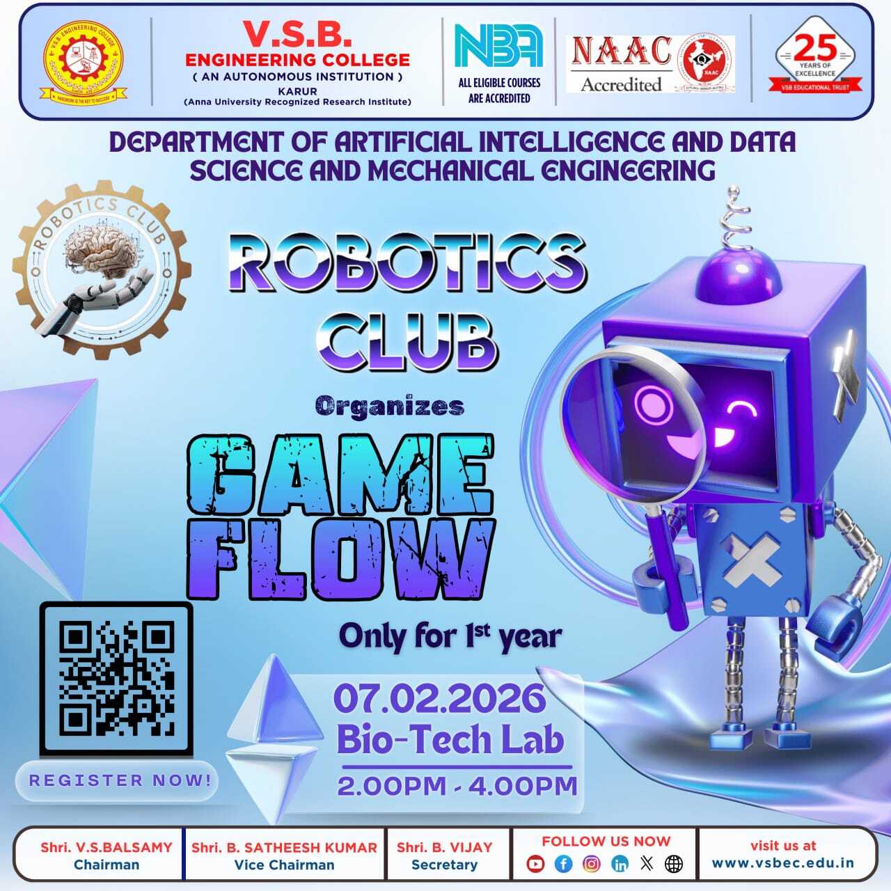 V.S.B. Engineering College is situated in a quiet and favourable location, creating an ultimate learning environment to stimulate academic and individual growth.
